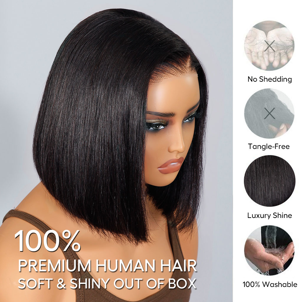 Double Drawn Bone Straight Bob Wig Pull & Go Glueless 6×5 Lace Raw Human Hair Wig