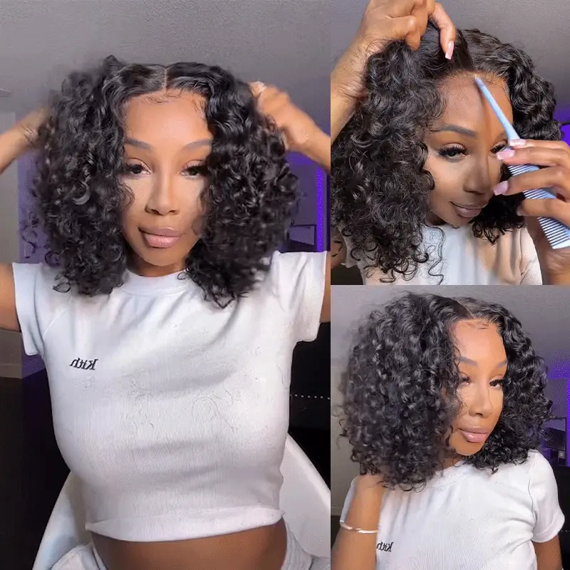 Bouncy Water Wave Short Bob Wig Wear And Go Glueless 6×5 Lace Wig Pre-Bleached Knots