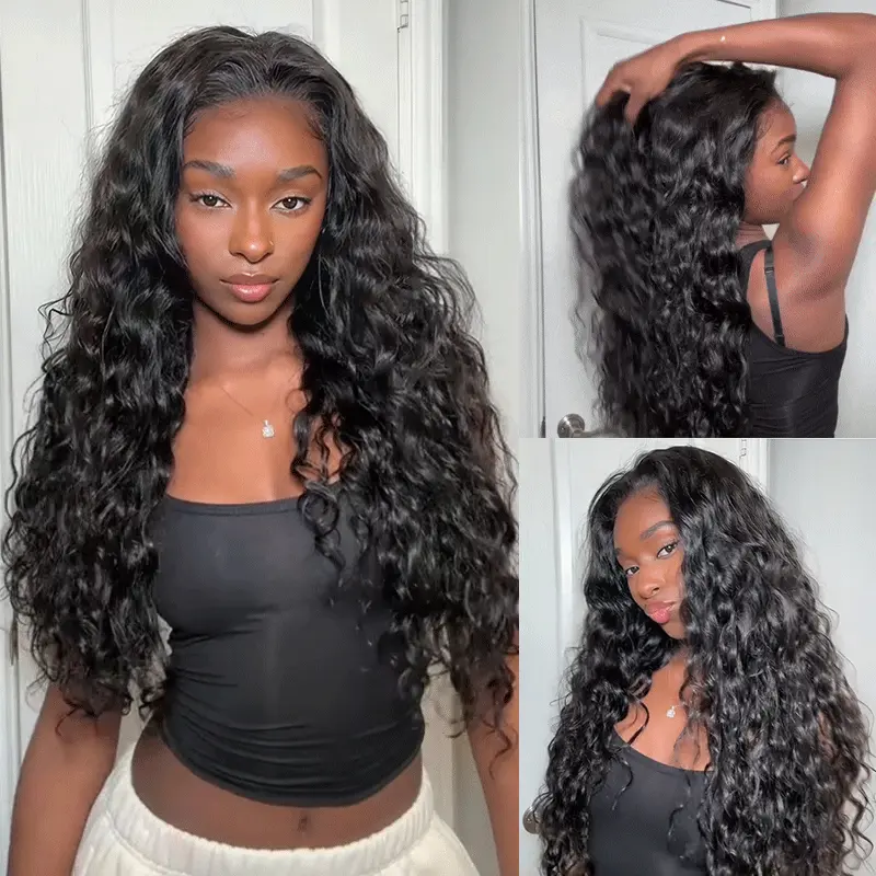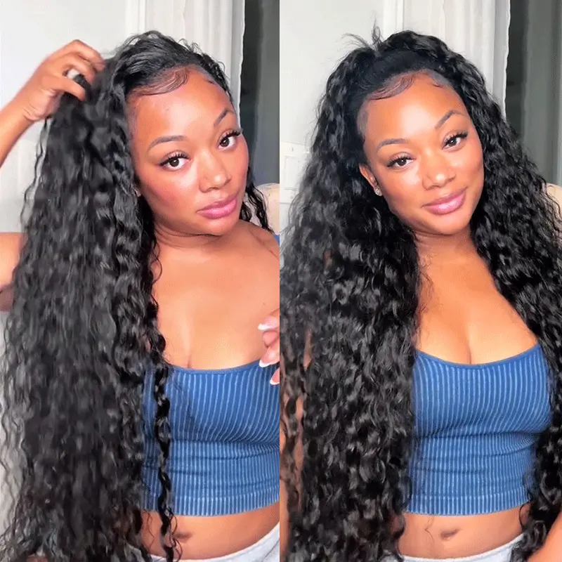 Beach Curly Natural Wave Half Wig Glueless Human Hair Wig 3 IN 1 Quick Install
