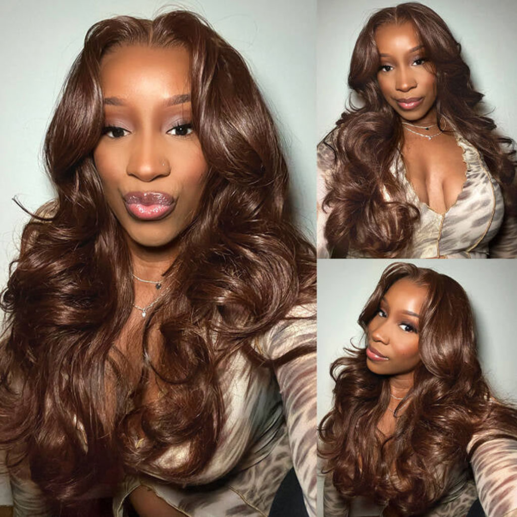 Trendy Layered Cut Loose Wave Wig Dark Brown / Burgundy Color Pull Go Glueless 6×5 Lace Wig 200%