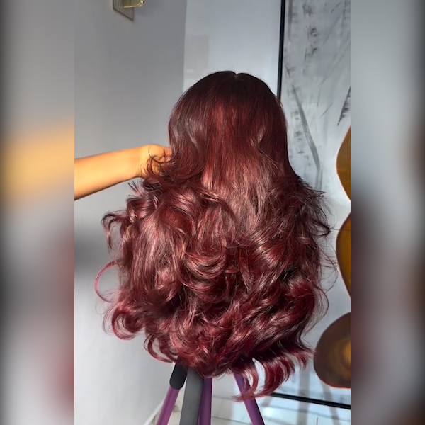 240 reviews for Trendy Layered Cut Loose Wave Wig Dark Brown / Burgundy Color Pull Go Glueless 6×5 Lace Wig 200%