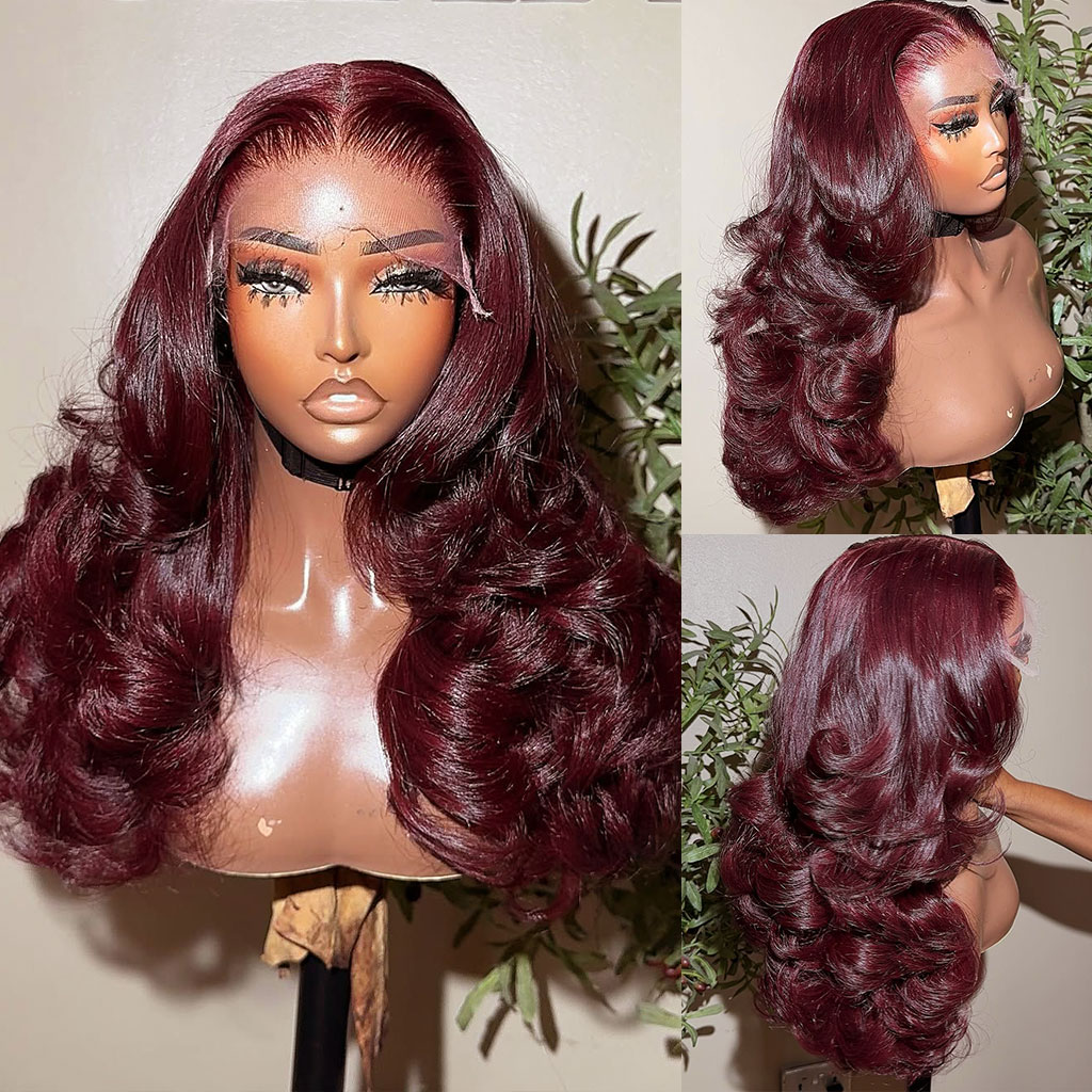 240 reviews for Trendy Layered Cut Loose Wave Wig Dark Brown / Burgundy Color Pull Go Glueless 6×5 Lace Wig 200%