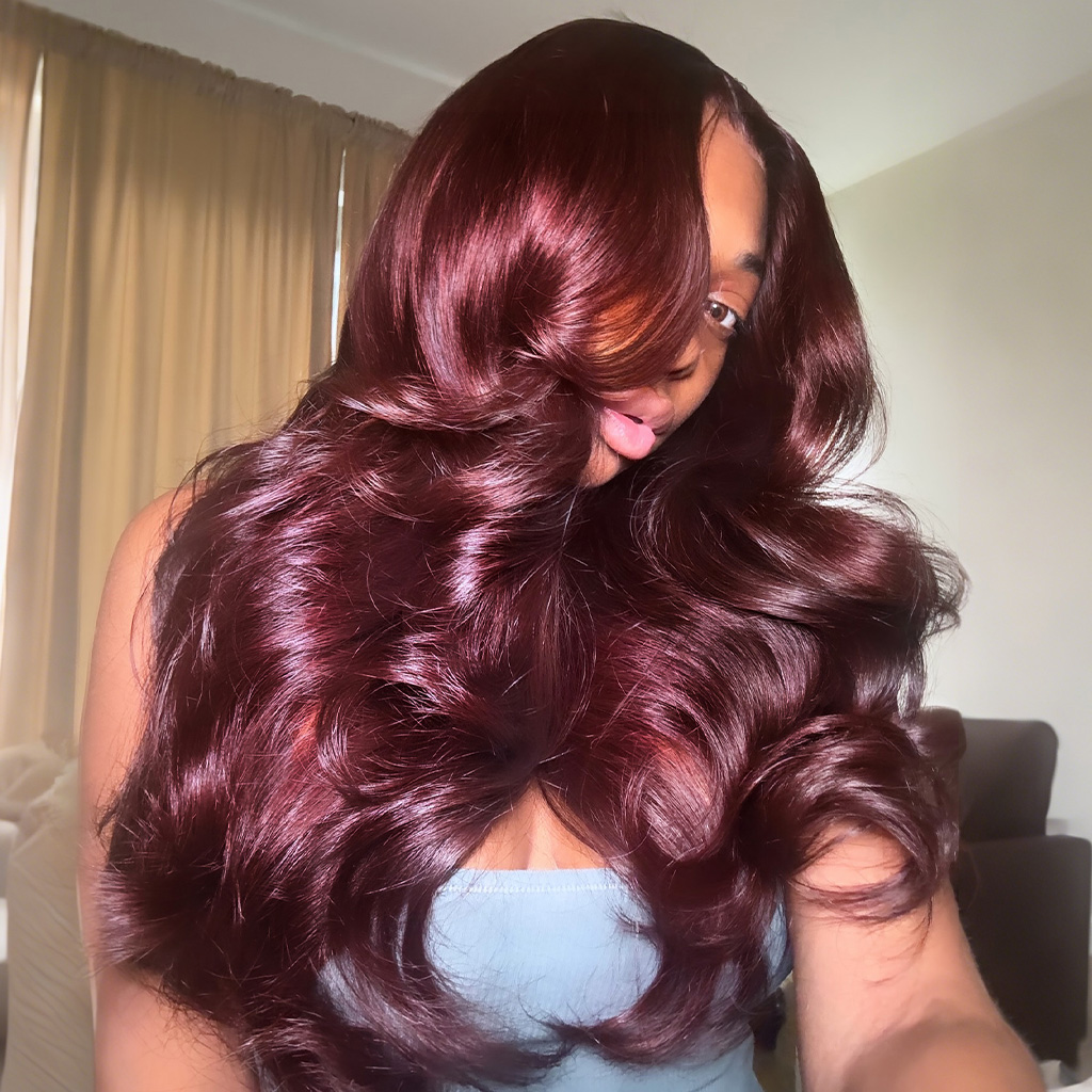 Butterfly Layered Cut Dark Burgundy Loose Wave Wig Pre-Everything Glueless 6×5 Lace Wig 200%