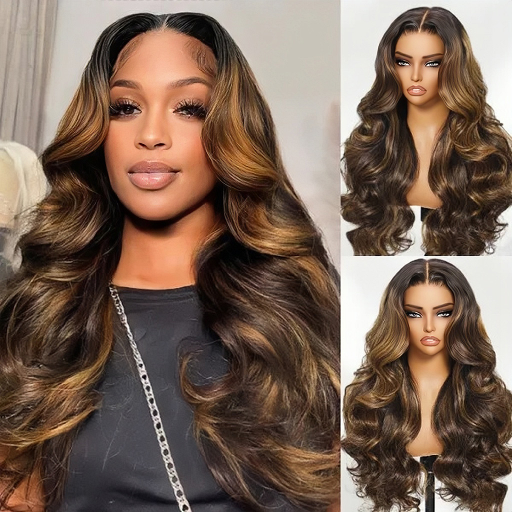 Highlight Honey Brown Body Wave 6×5 13×4 Glueless HD Lace Front Wigs Human Hair