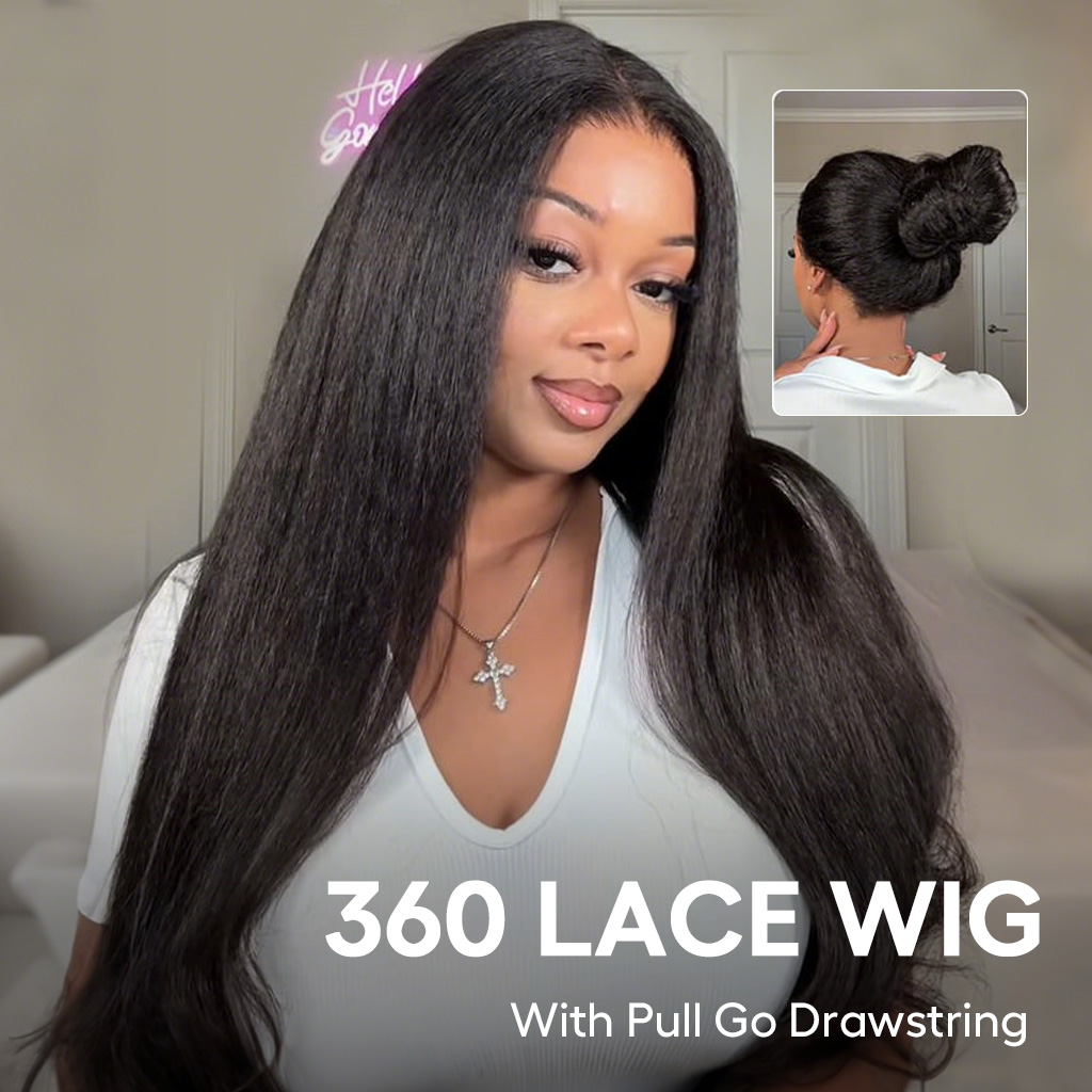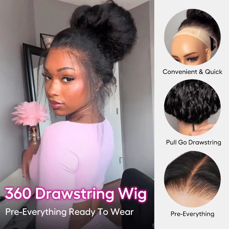 243 reviews for Kinky Straight Pull Go 360 Drawstring Lace Frontal Wigs Pre Plucked Hairline Human Hair Wigs