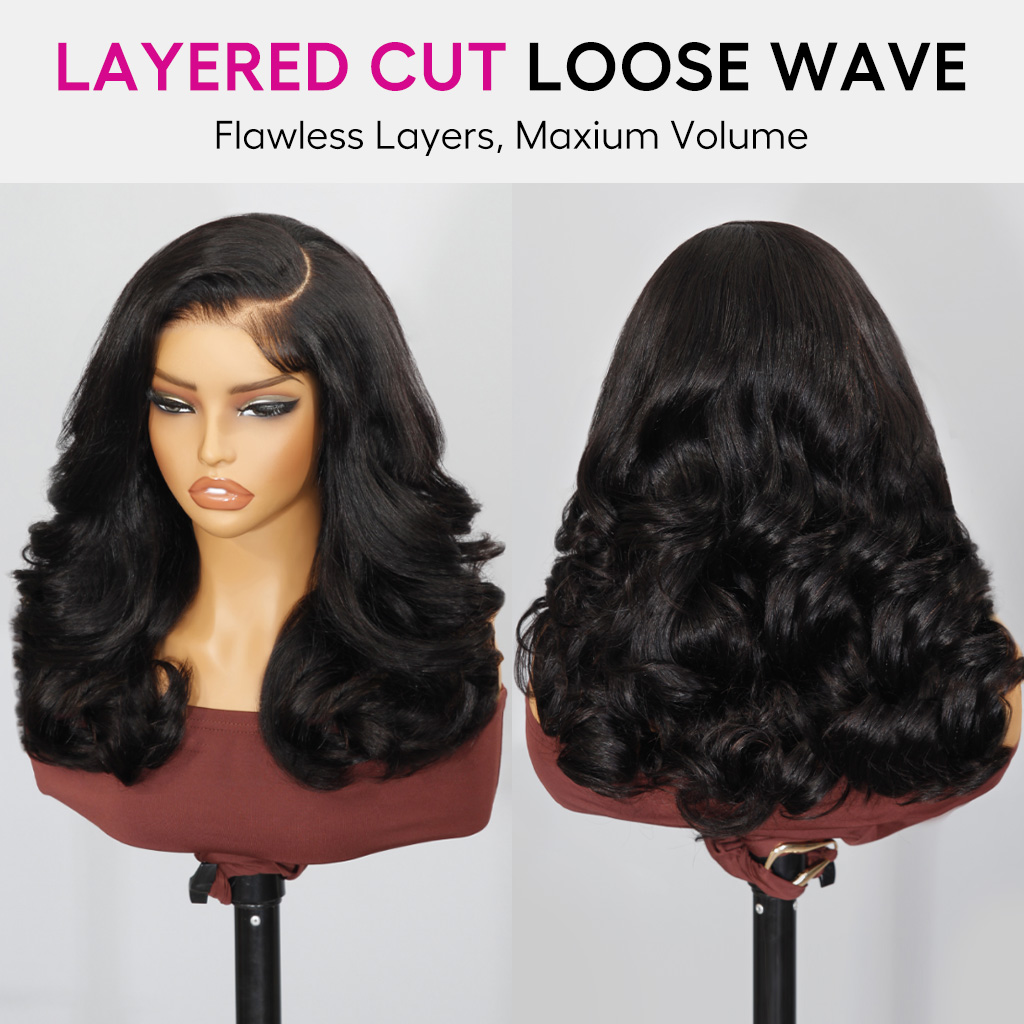 106 reviews for Layered Cut Loose Wave Glueless Wig C-Side Part 6×5 HD Lace Wig Natural Hairline With Baby Hair