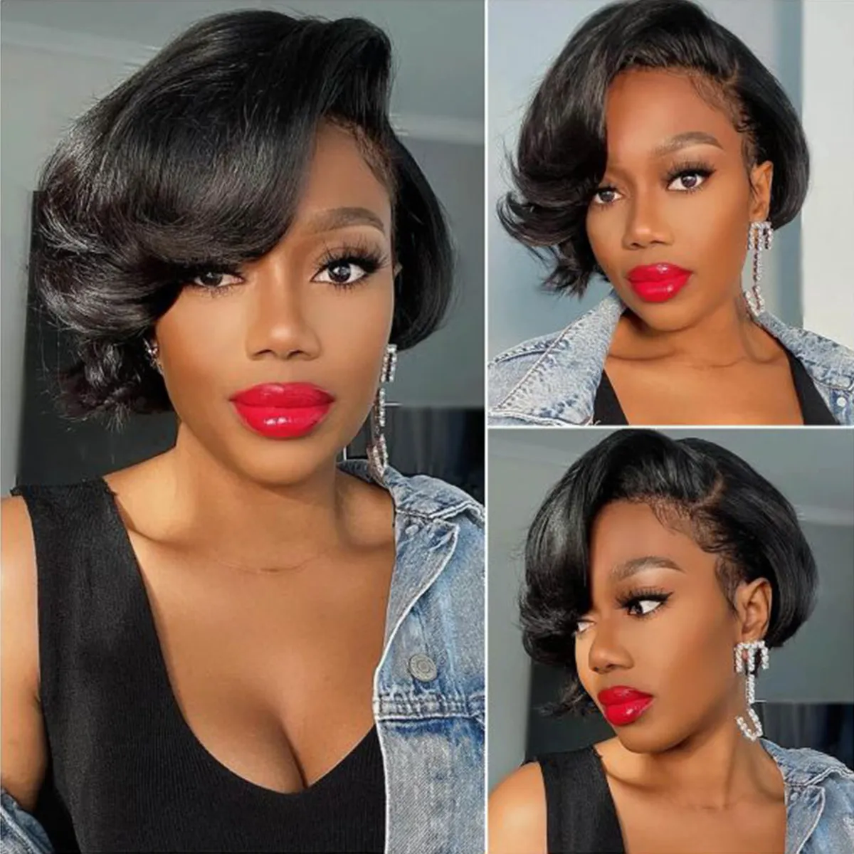 240 reviews for Glueless Human Hair Wigs Pixie Cut Straight Side Part 6×4 Lace Wigs 8 Inch